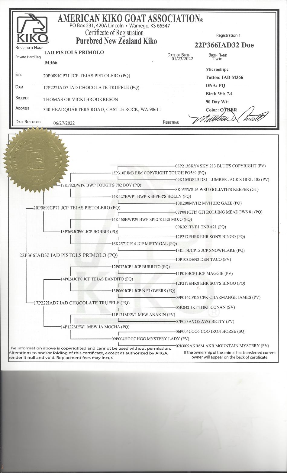 IAD Pistols Cocomo AKGA & NKR reg 100% NZ ancestry Kidded 01/23/2022 DNA Verified |